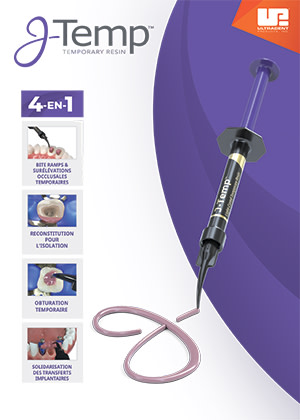 La résine temporaire J-Temp a été développée par le Dr Jaleena Jessop d'Ultradent pour mieux répondre aux multiples besoins auxquels les praticiens sont confrontés. Il s'agit d'une résine à base de méthacrylate radio-opaque, photopolymérisable et fluide qui fournit un matériau durable mais temporaire pour de multiples utilisations telles que les restaurations temporaires, les reconstitutions de dents, et plus.